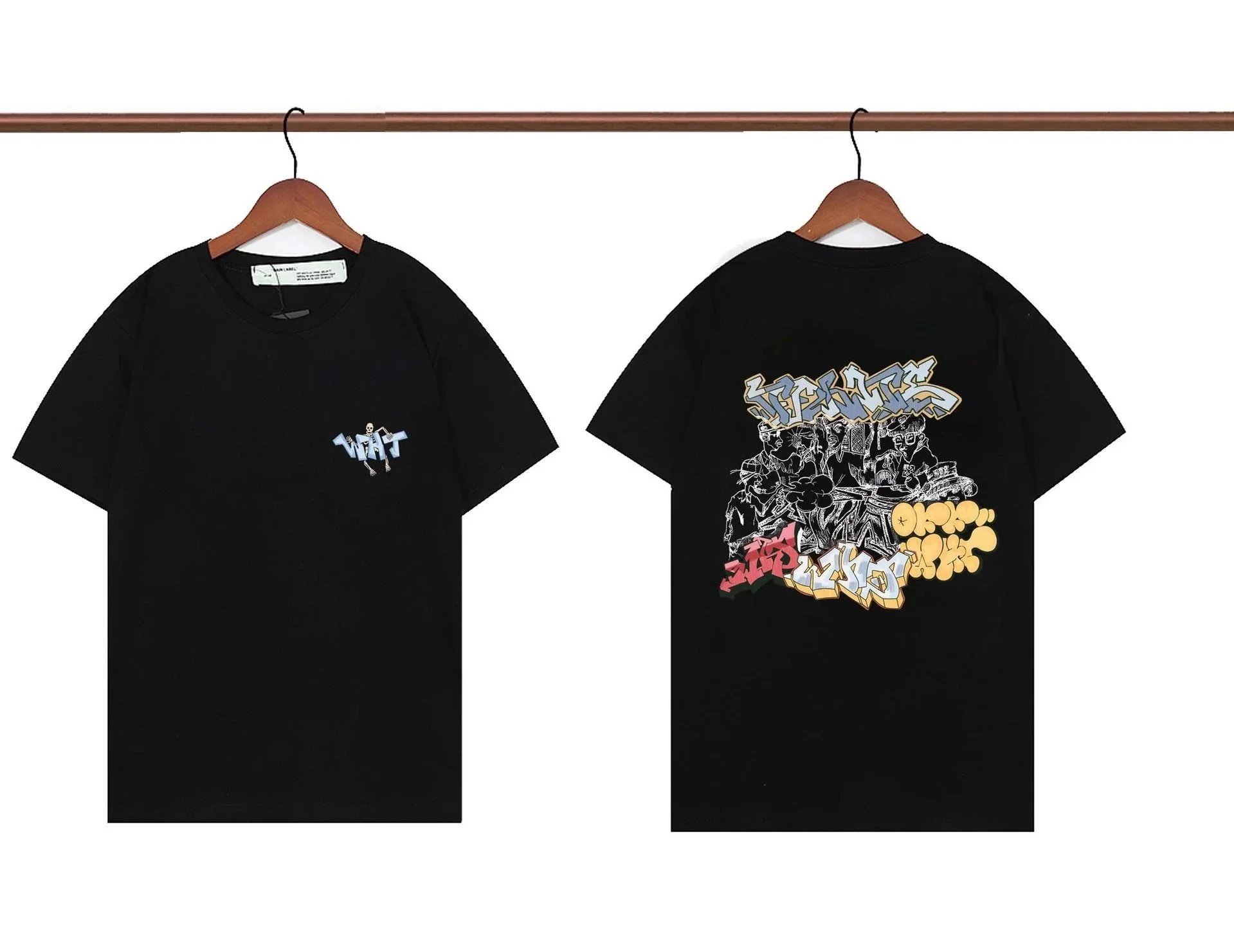 This black cotton jersey t-shirt features bold streetwear aesthetics with dual-sided graphic design. The front displays a minimalist chest print: a st...