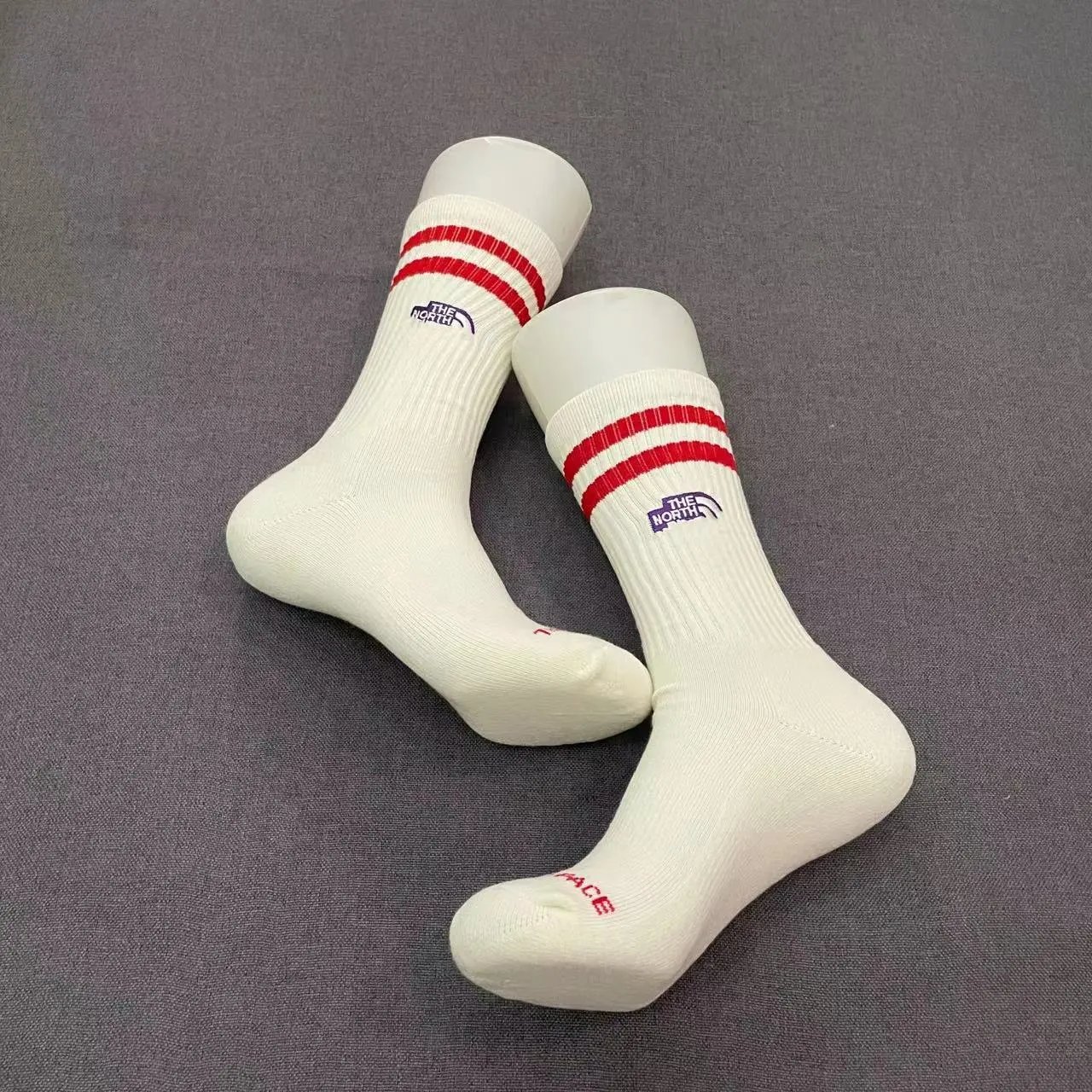 These are premium crew-length socks from The North Face, featuring a classic ribbed knit construction for enhanced fit and durability. The design show...