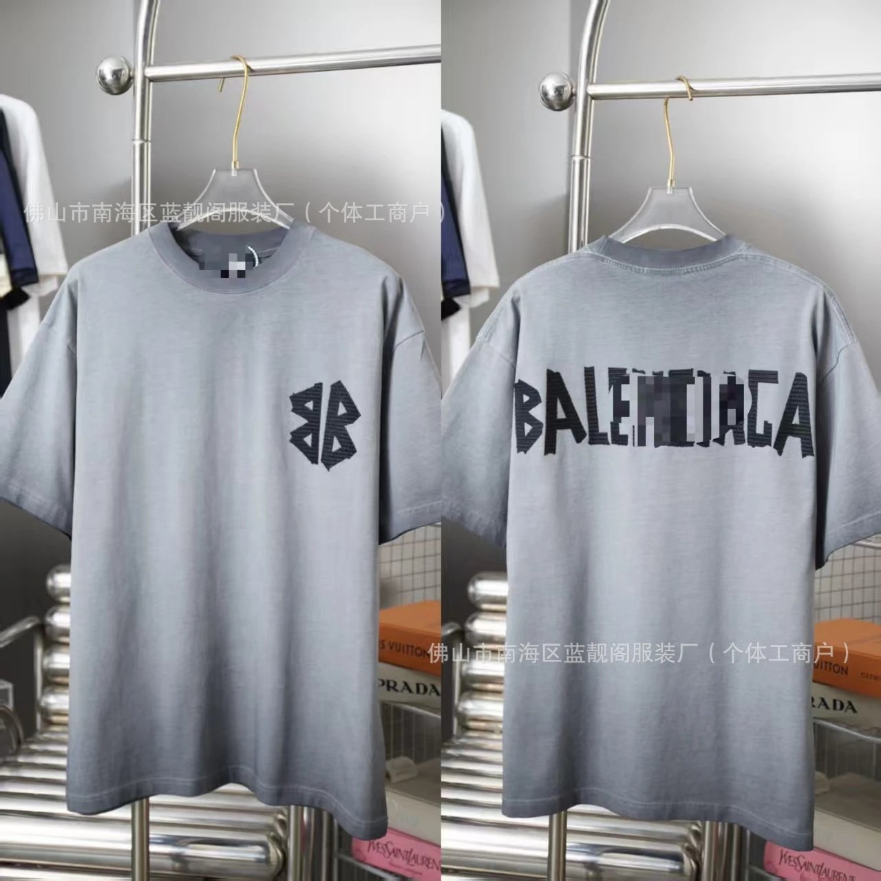 This oversized crewneck T-shirt features Balenciaga's signature bold branding: a stylized 'BB' monogram on the front chest and the full 'BALENCIAGA' l...