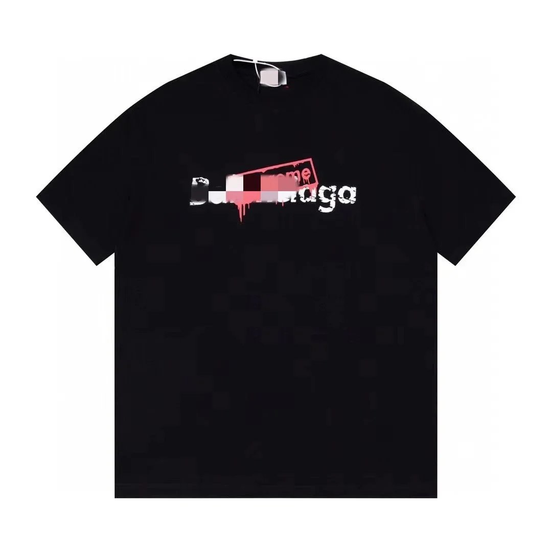 This Balenciaga t-shirt features a bold, deconstructed graphic print centered on the chest: the brand name 'Balenciaga' rendered in distressed white typography with a pixelated, glitch-effect red-and-white rectangular overlay that appears to 'drip' downward—evoking digital corruption and streetwear subversion. The garment is crafted from premium heavyweight cotton jersey, offering a relaxed, oversized silhouette with dropped shoulders and a ribbed crew neckline for comfort and durability. A minimalist white tag at the collar reinforces authenticity without overt branding. Ideal for avant-garde street style, the design balances high-fashion conceptualism with wearable ease. Perfect for layering or solo wear in urban settings, it resonates with Gen-Z and fashion-forward consumers who embrace irony, digital aesthetics, and luxury anti-branding. The black base ensures versatility, while the glitch-print commands attention—making it a statement piece for gallery openings, music festivals, or casual downtown outings. Machine washable and pre-shrunk for longevity.