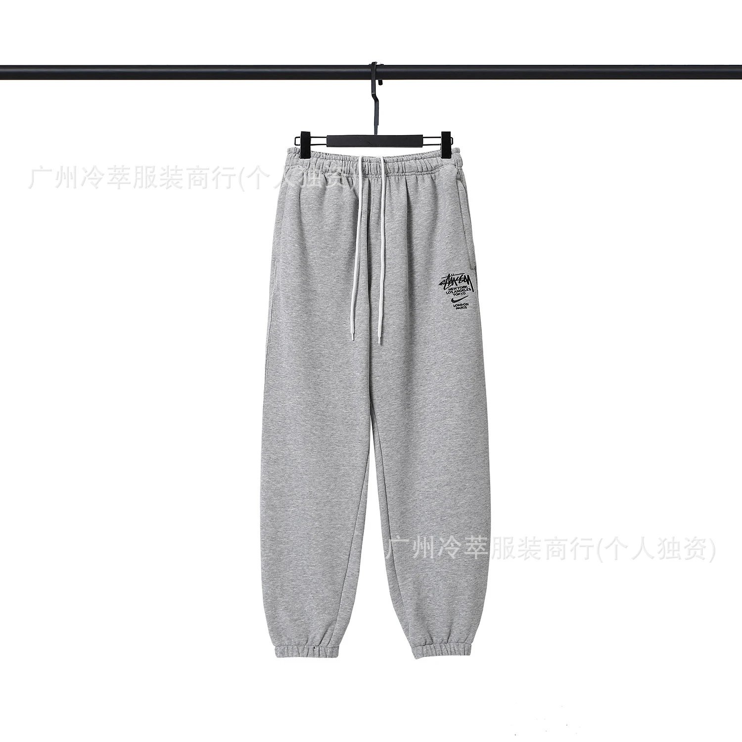 These gray heather sweatpants feature a relaxed, tapered jogger silhouette with elasticated waistband and drawstring closure for adjustable fit. The left thigh displays a distinctive collaborative graphic: Stüssy’s iconic graffiti-style logo stacked above 'NEW YORK LOS ANGELES TOKYO LONDON PARIS' text, with the Nike Swoosh integrated beneath—confirming an official Stüssy x Nike collaboration. Constructed from soft, mid-weight cotton-blend fleece, they offer premium comfort and breathability. Ribbed cuffs ensure a clean, modern finish while maintaining mobility. Ideal for streetwear styling, casual lounging, or light athletic activity, these pants balance heritage branding with contemporary utility. The minimalist colorway enhances versatility across seasons, pairing effortlessly with sneakers, tees, or hoodies. Designed for unisex appeal with a slightly oversized cut, they embody the collaborative ethos of two icons in urban sportswear—Stüssy’s rebellious street credibility merged with Nike’s performance DNA.